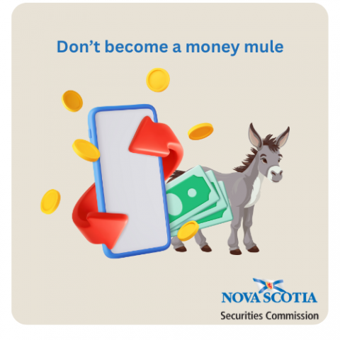 Recently the Nova Scotia Securities Commission has encountered several individuals that have been deceived into acting as money mules. Acting as a money mule is not only illegal, but also very dangerous as it could lead to criminal charges and potential financial loss.