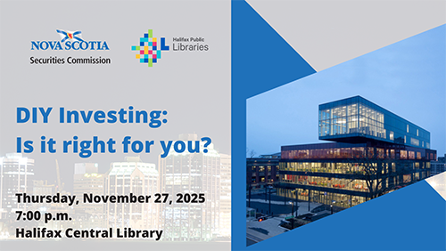 NSSC has two presentations scheduled at the Halifax Central Library in November covering basic investments and DIY investing.