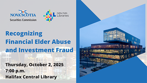 Join David Harrison from the Nova Scotia Securities Commission to learn what financial elder abuse is, some of the vulnerabilities and warning signs, and what to do if you think a loved one may be a victim. David will also examine the red flags of investment fraud to help you recognize and avoid investment fraud.