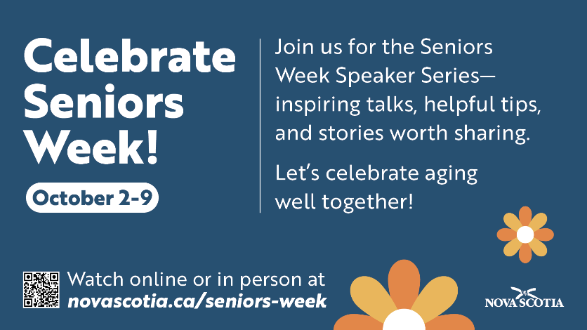 During Seniors Week the Nova Scotia Department of Seniors is delivering a speaker series from Oct. 2- 9. NSSC will be taking part in two of these sessions which will be delivered online. To learn more about the series please visit this website.